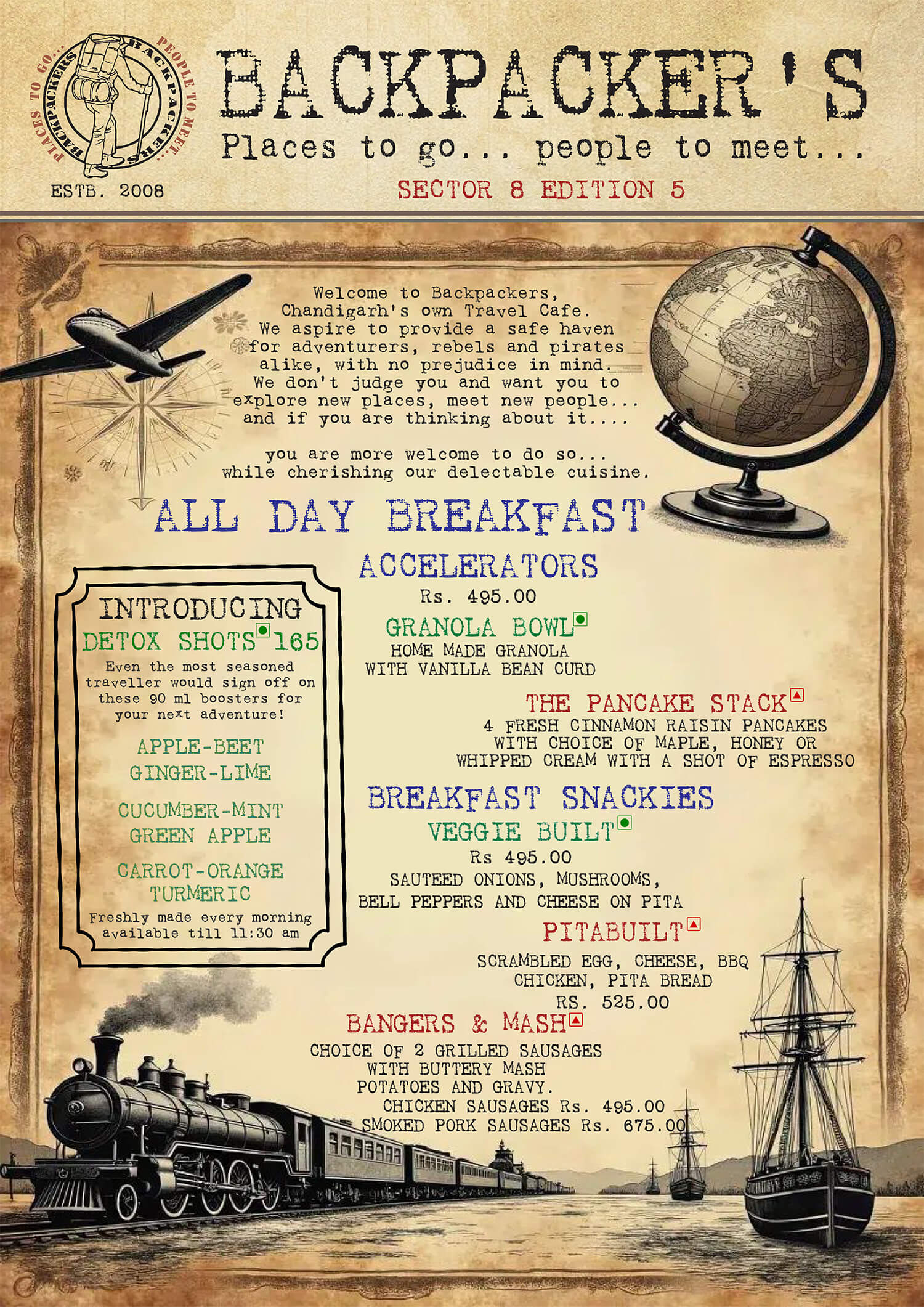Backpackers Cafe has beautiful and calm interiors. Sit and relax and have your amazing cup of coffee with your favourite sandwiches or pastas, burgers, pizzas.